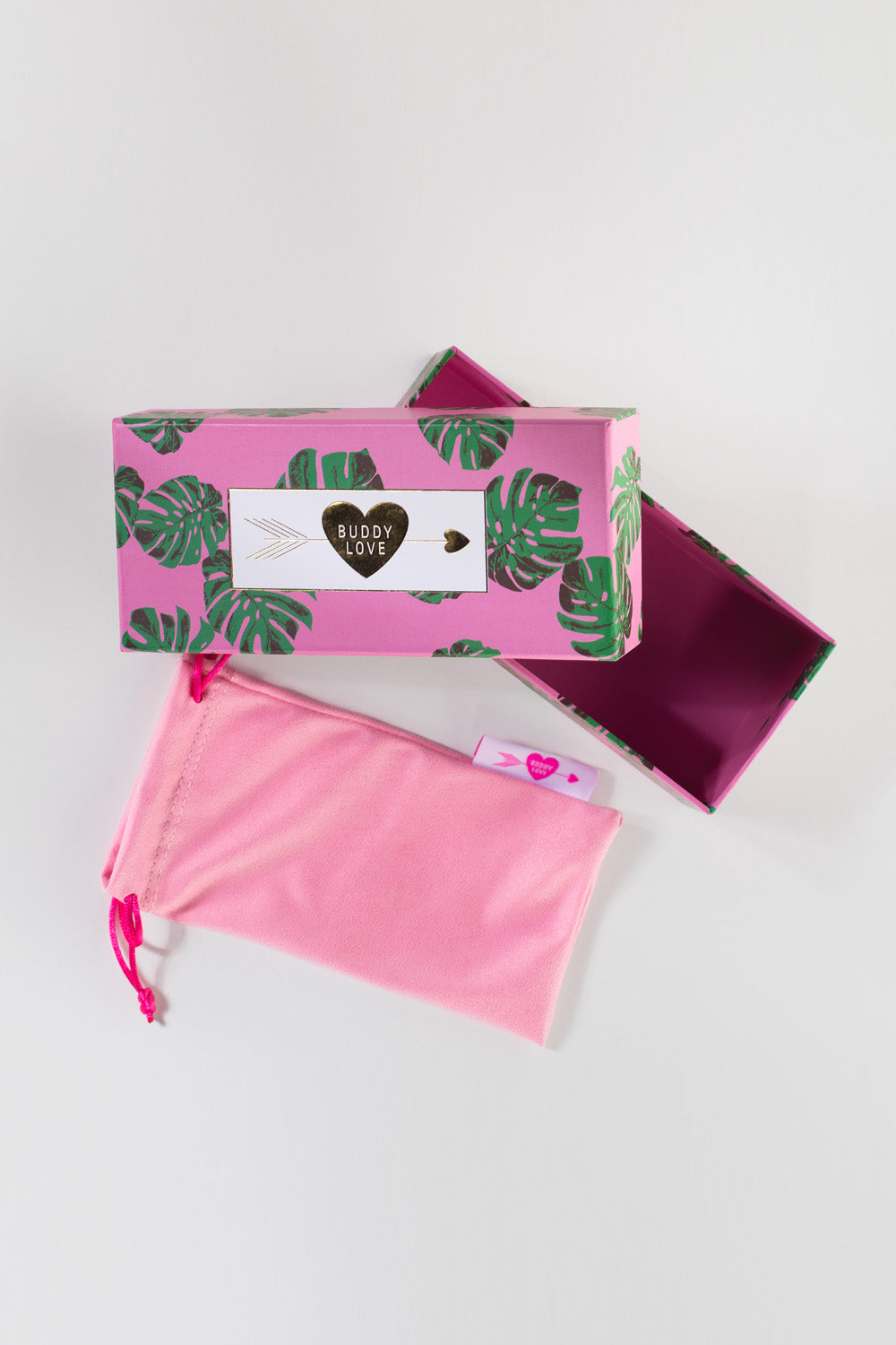 Don't be afraid to go all out with your accessories this year! Our Farrah Sunglasses feature a round lens with a blue tint and metal frames. All of our Sunglasses are Scratch Resistant, UVA and UVB ray protection, Etched BuddyLove Logo on lenses, and a BuddyLove Engraved ear piece. The perfect accessory all of your outfits!